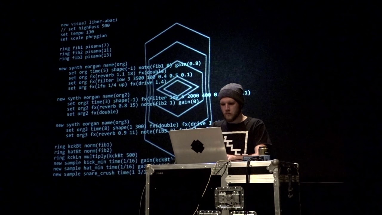 Friday: Timo Hoogland: The developer of Mercury uses his language to live code algorithmic electronic music in genres such as minimal, techno and ambient. This performance explores the famous fibonacci sequence in a musical structure.